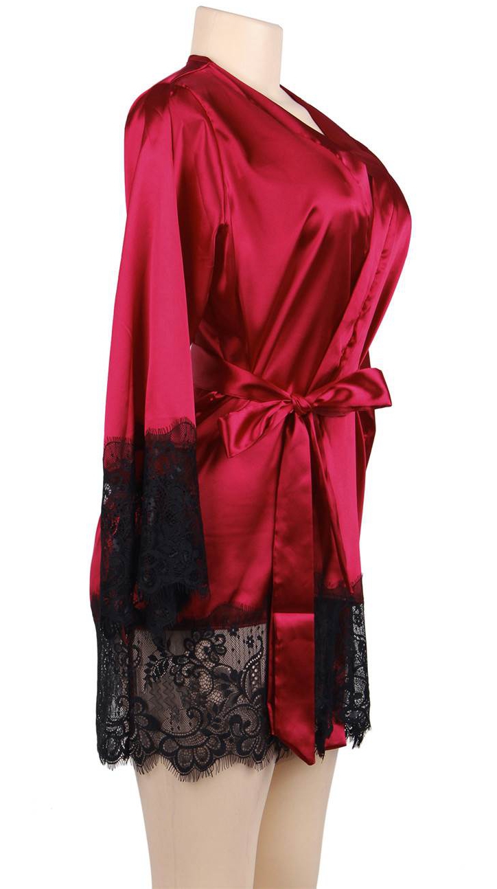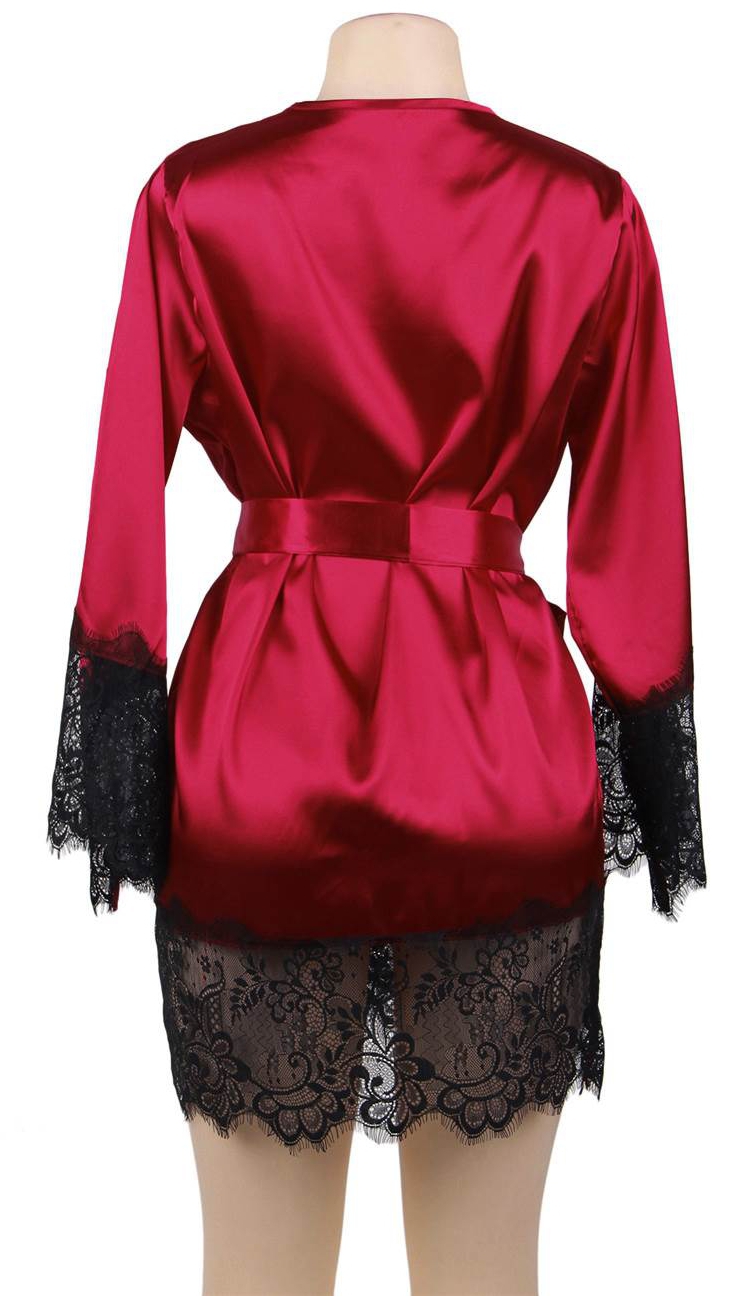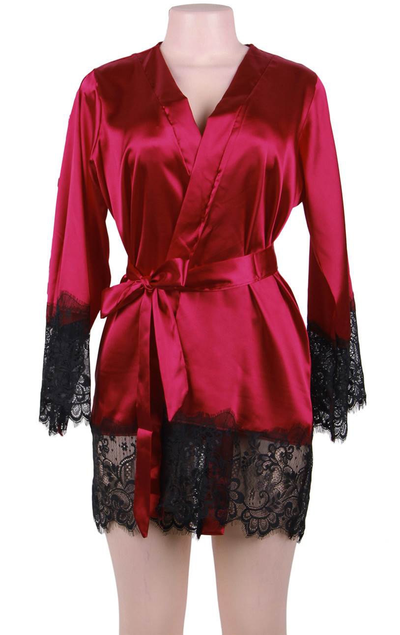 Атласный пеньюар с отделкой из нежного черного кружева.