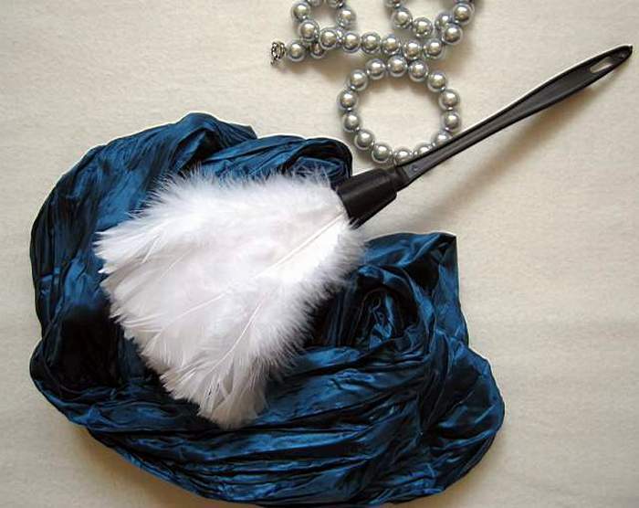 Метелочка с нежными перышками отлично подойдет к игровому костюму горничной. Может стать не только частью образа, но и прекрасным инструментом для эротических ласк.