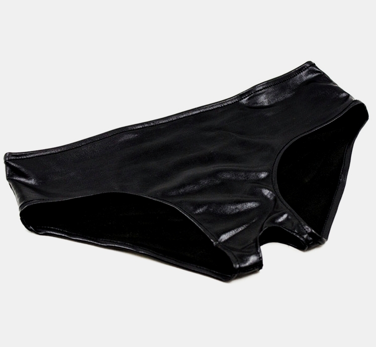 Черные виниловые трусики с вырезом в интимной части.