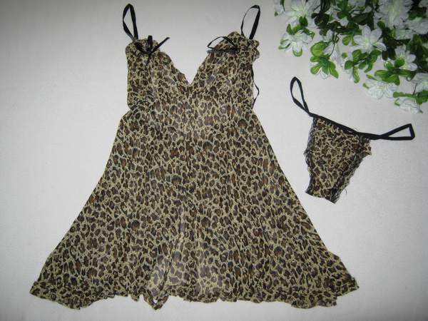 Свободная сорочка с разрезом на спине. В комплект входят трусики-стринги.