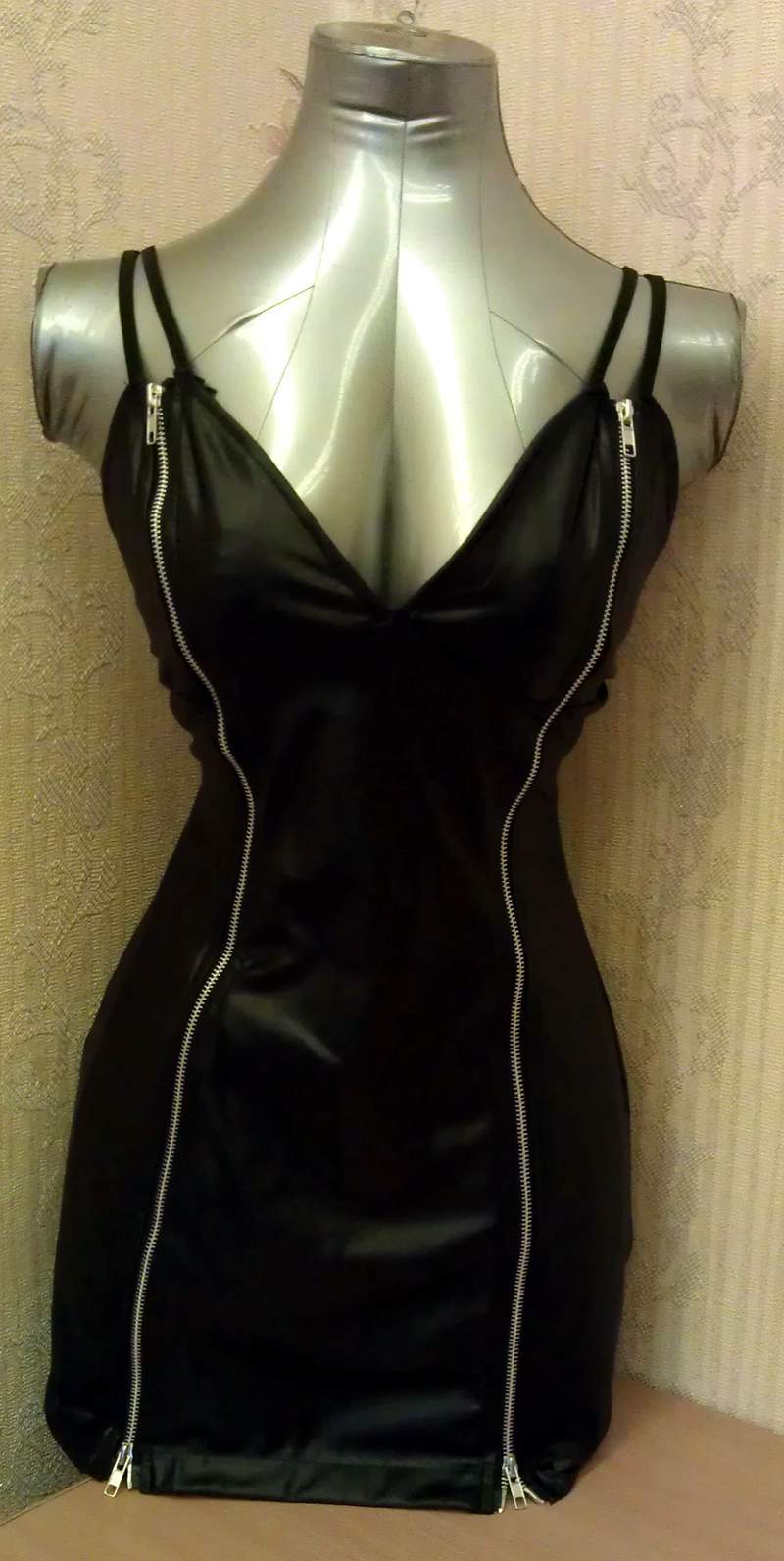 Черное виниловое платье с вертикальными молниями по длине всего платья.