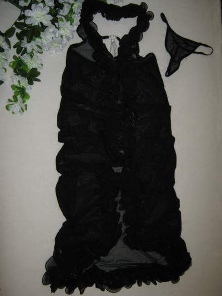 Сексуальное черное платье с рюшами и высоким вырезом.