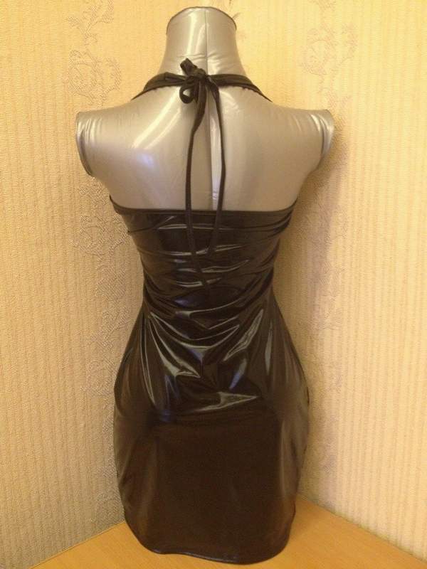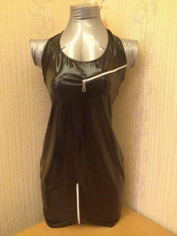 Короткое сексуальное платье из аналога винила, декорированное молниями.