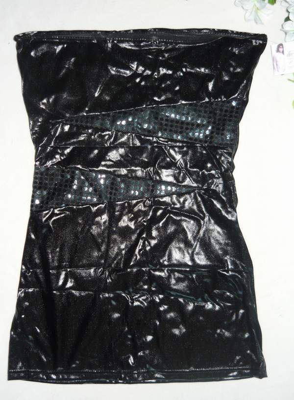 Открытое платье, плотно облегающее фигуру, подчеркнет все достоинства девушки, а поперечные вставки из прозрачной ткани, расшитой пайетками, расставят правильные акценты, лаконично завершив образ. В комплект входят трусики-стринги.
