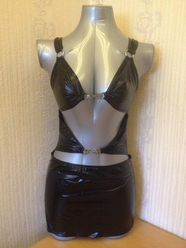 Элегантное черное платье с вырезами спереди. Трусики в комплекте.