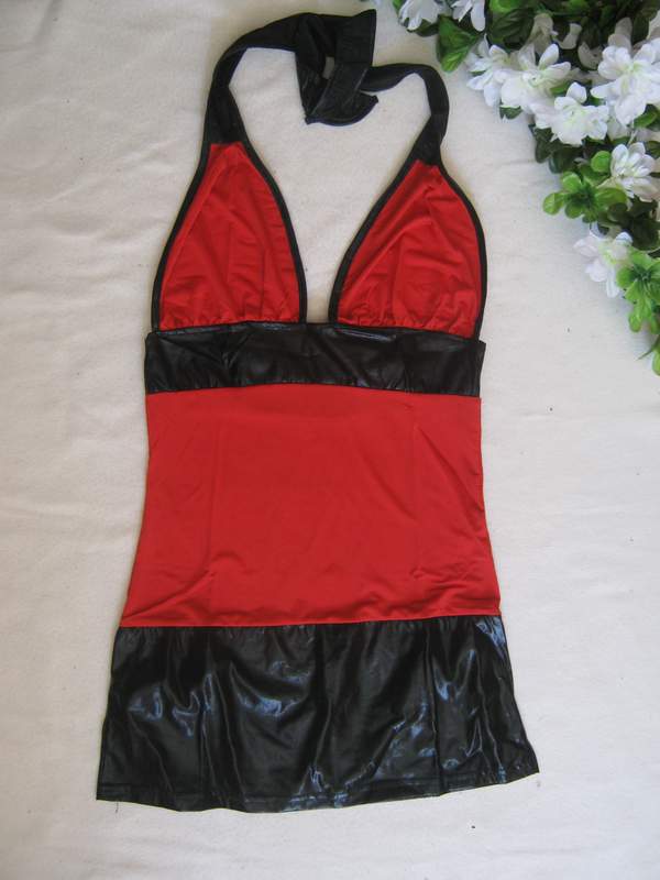 Платье ярко-красного цвета в сочетании с черными виниловыми вставками будет выглядеть эффектно на любой вечеринке.