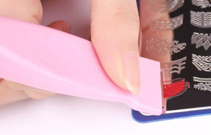 3. Скребком уберите с трафарета лишний лак