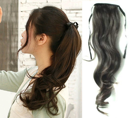 Накладной хвост из волнистых искусственных волос (темно-коричневый)