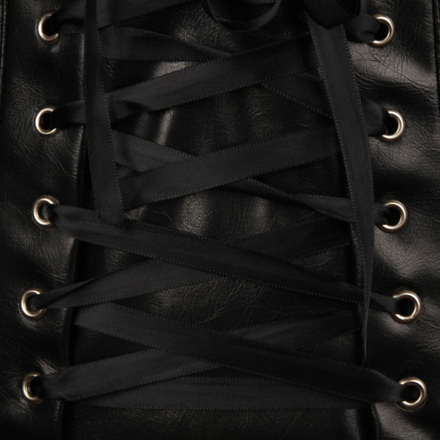 Декоративная шнуровка спереди, застежка - крючочки сзади.