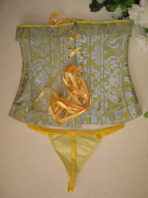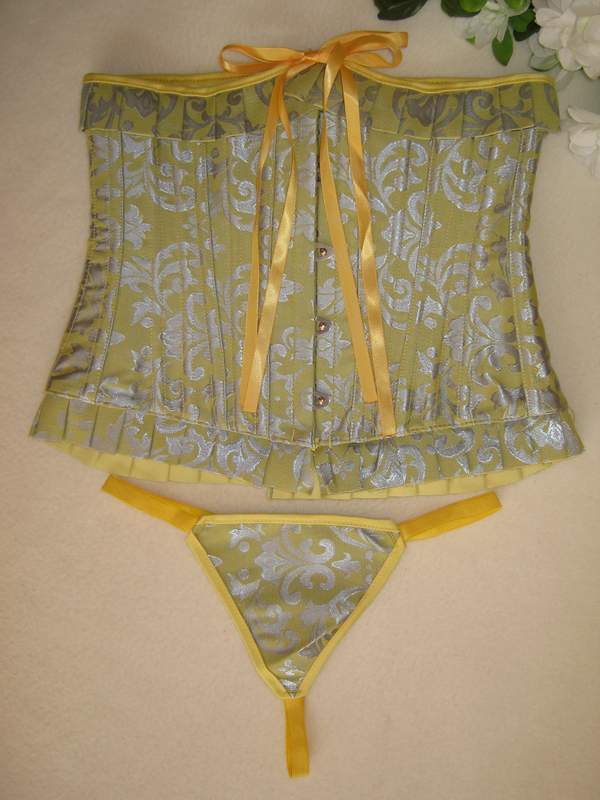 Элегантный подгрудный корсет желто-голубого цвета. Подходит для повседневной носки. Классическая шнуровка сзади, прочная стальная застежка - бюск спереди.