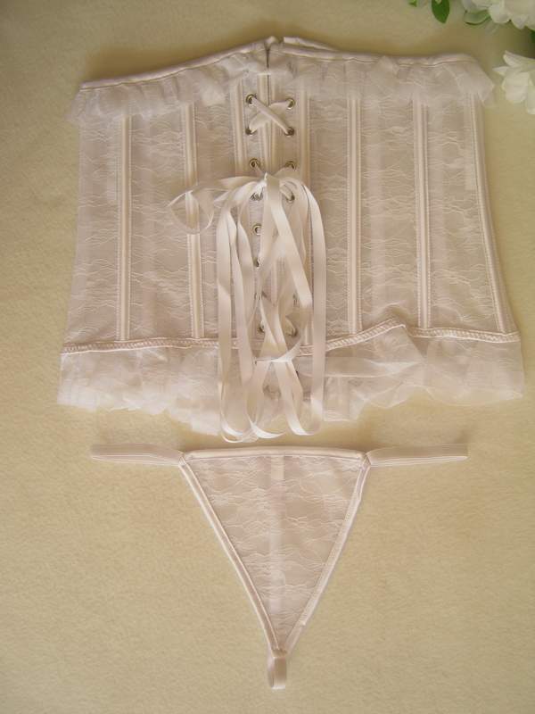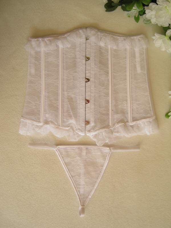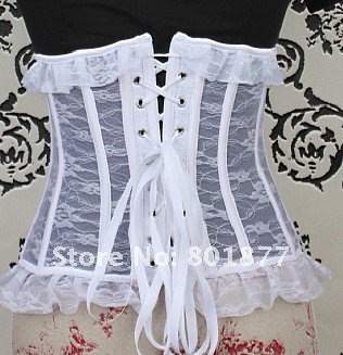 Элегантный подгрудный корсет, выполненный из белого кружева. Классическая шнуровка сзади, прочная стальная застежка - бюск спереди.