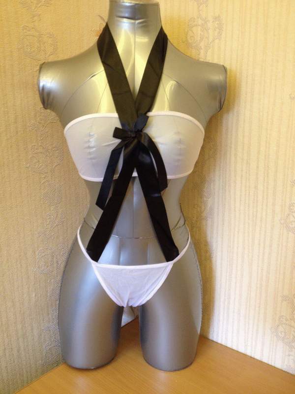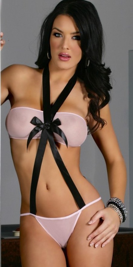Сексуальное полупрозрачное боди. Трусики и топ соединены широкими атласными лентами.