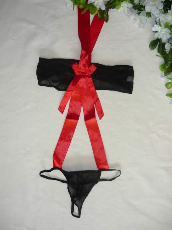 Сексуальное полупрозрачное боди. Трусики и топ соединены широкими красными атласными лентами.