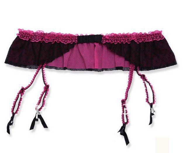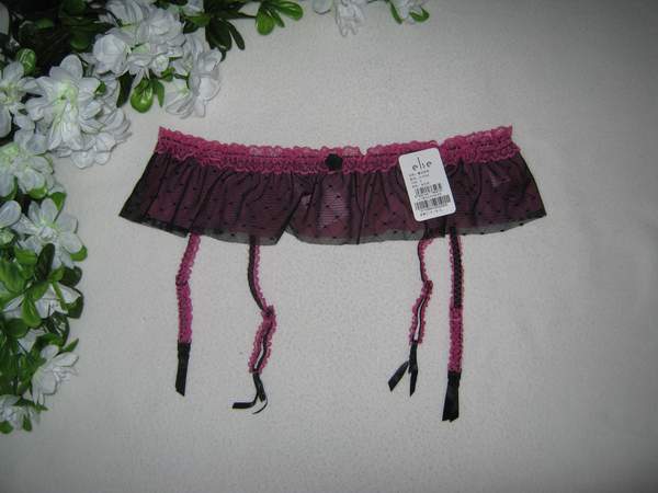Двухслойный фиолетово-черный пояс для чулок. Сзади застежка