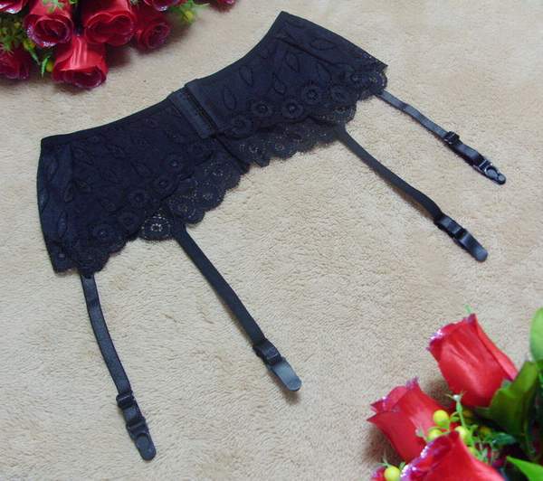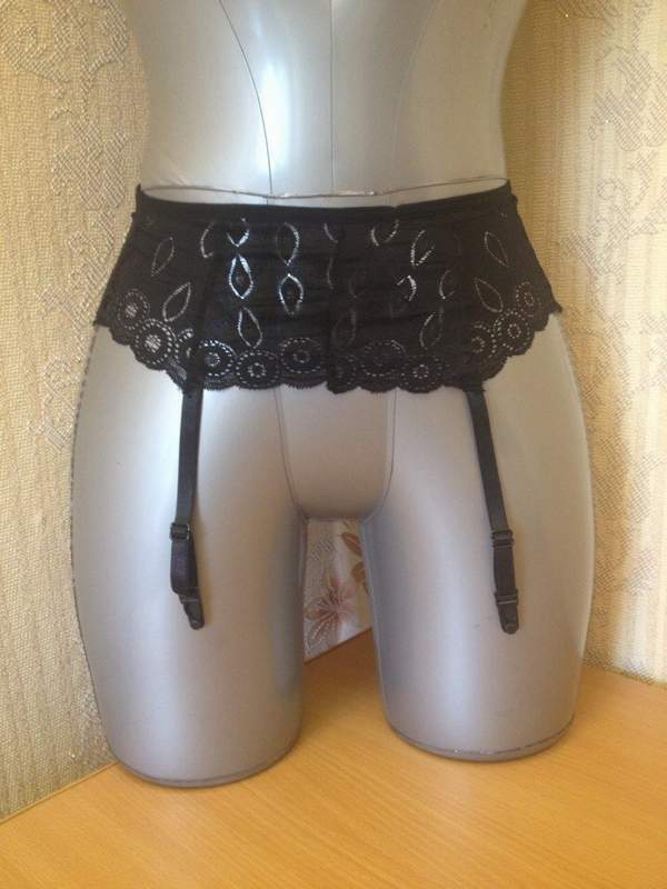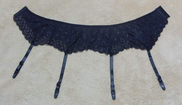 Широкий черный пояс с подвязками для чулок. Регулировка пажей осуществляется по тому же принципу, как и лямки у бюстгальтера.
