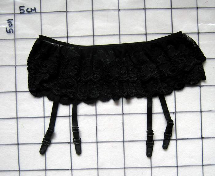 Двухслойный пояс для чулок из мягкого черного кружева.