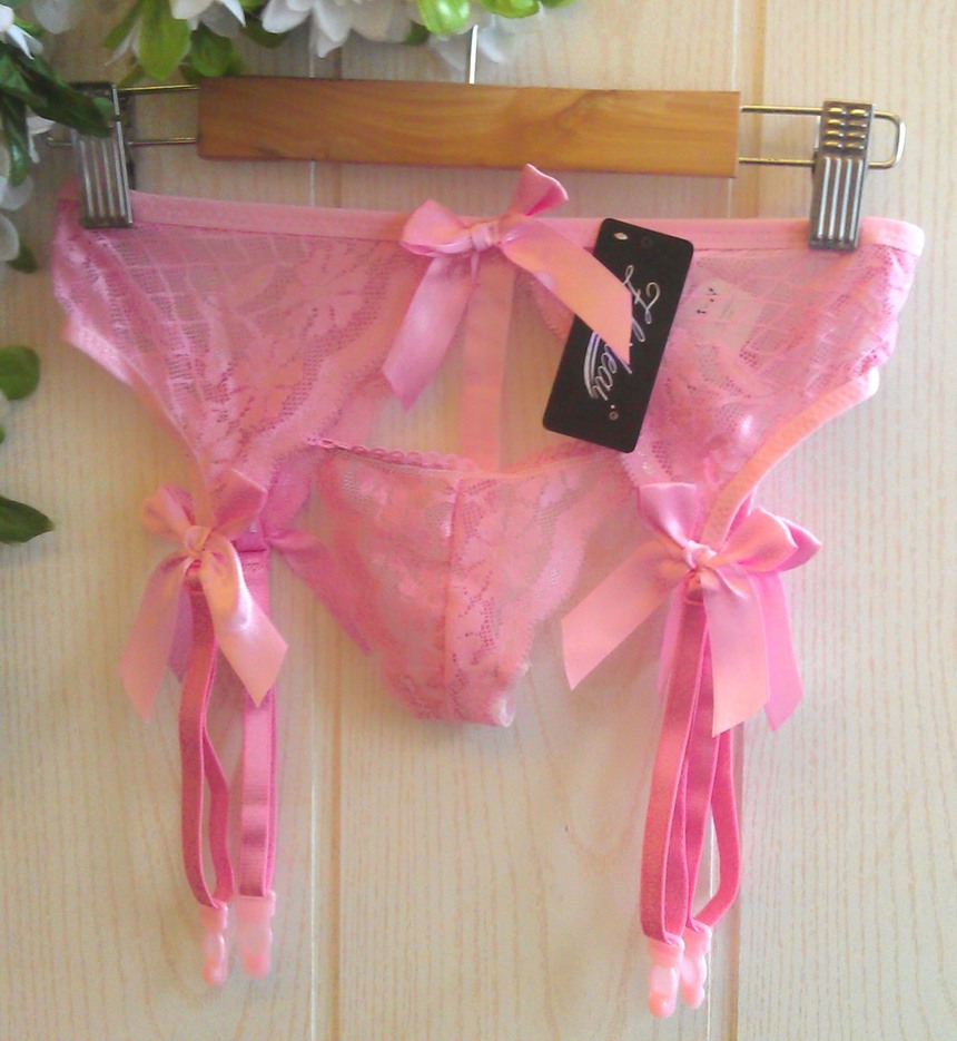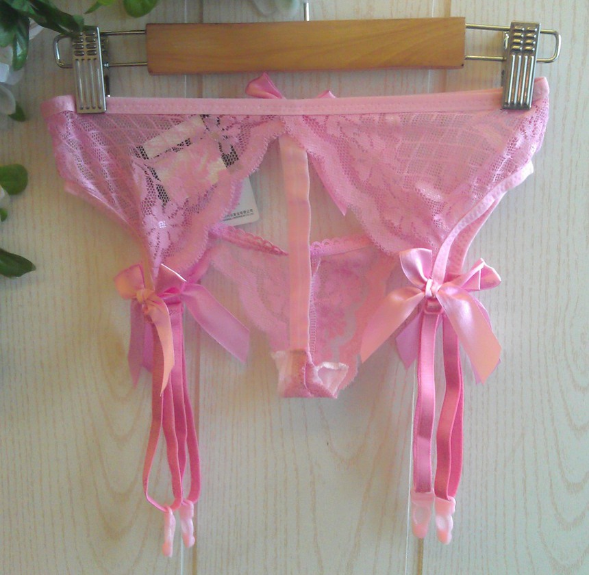 Пояс-трусики выполен из тонкого кружевного материала. Модель украшена соблазнительными атласными бантиками.