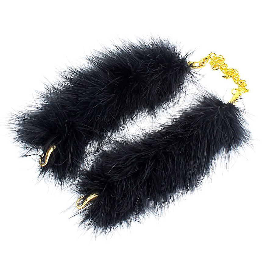 Представляют собой металлическую цепь с карабинами, декорированную пухом