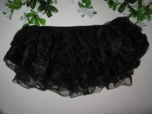 Короткая пышная многосолойная юбка черного цвета. Пояс-резинка.