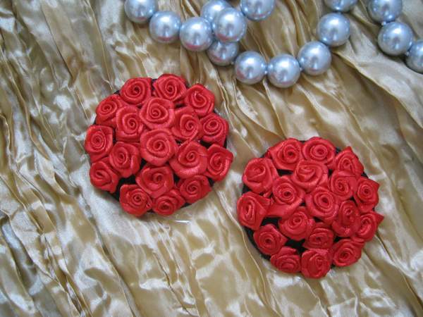 Пикантные пэстис для груди. Украшены маленькими атласными розочками. Многоразовые, крепятся на липком силиконе.
