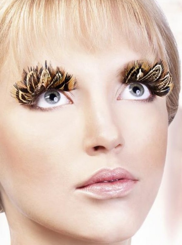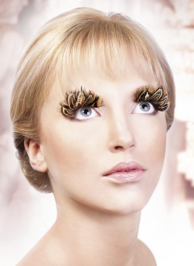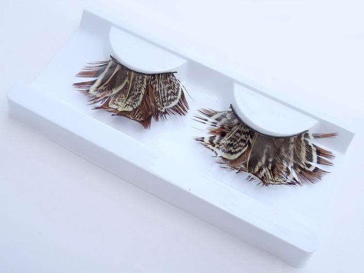 Густые ресницы из мягких перьев, выполненных в коричневом цвете.