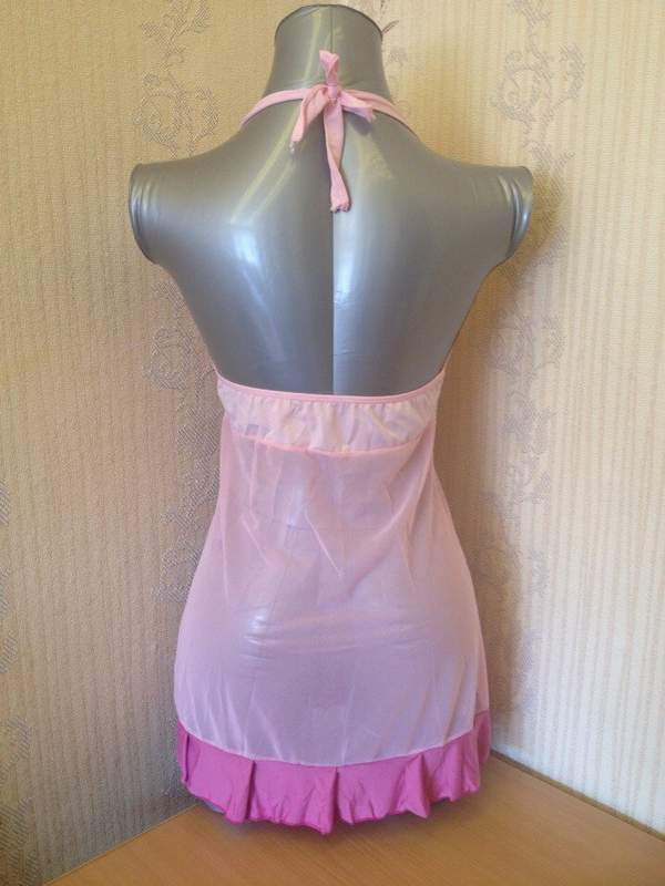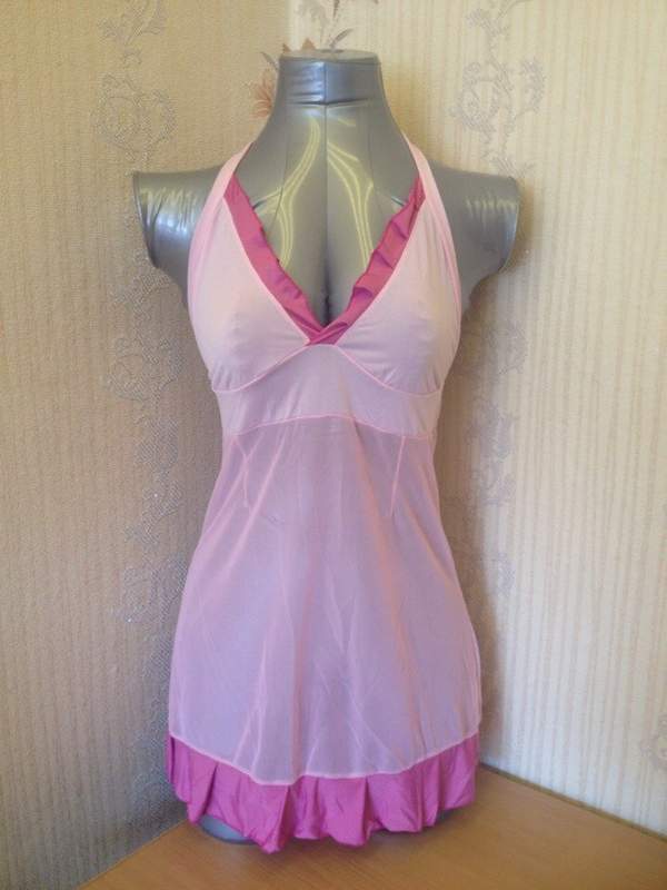 Короткая сорочка нежно-розового оттенка с контрастной отделкой