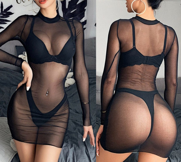 Сексуальное полупрозрачное нижнее белье с длинным рукавом