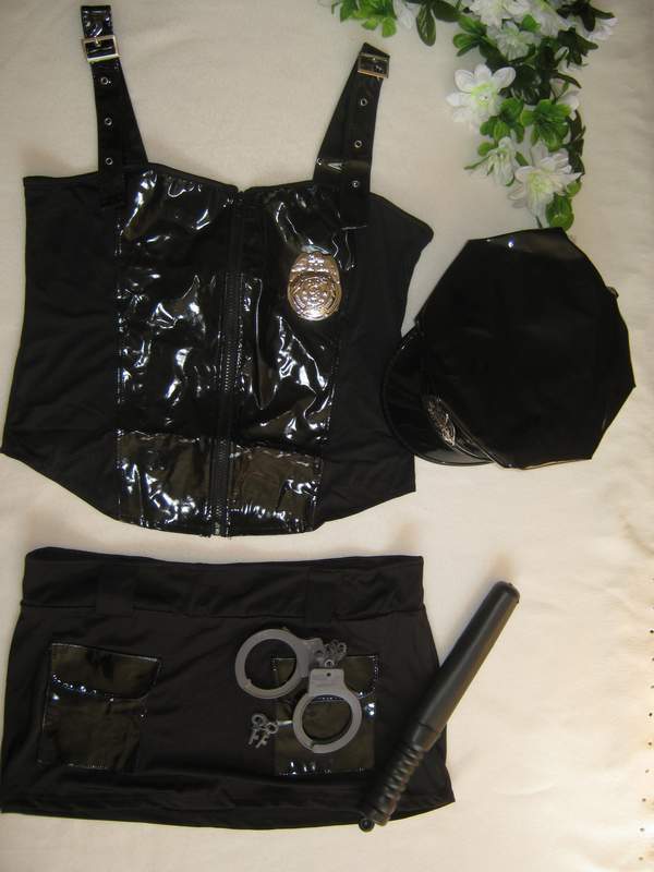 Комплектация: юбка, топ, пояс, кепка, наручники (пластмассовые), значок