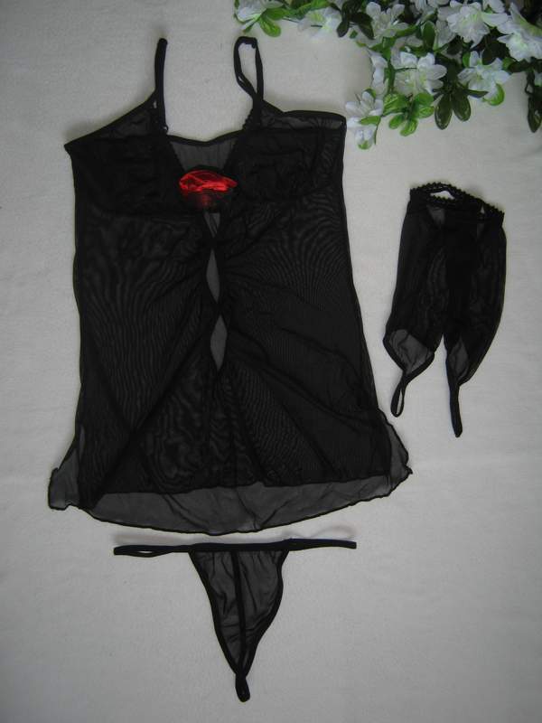 Полупрозрачная сорочка на тонких регулируемых бретелях. Яркая красная роза украшает грудь.