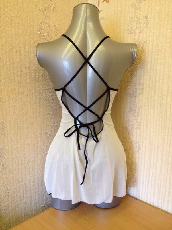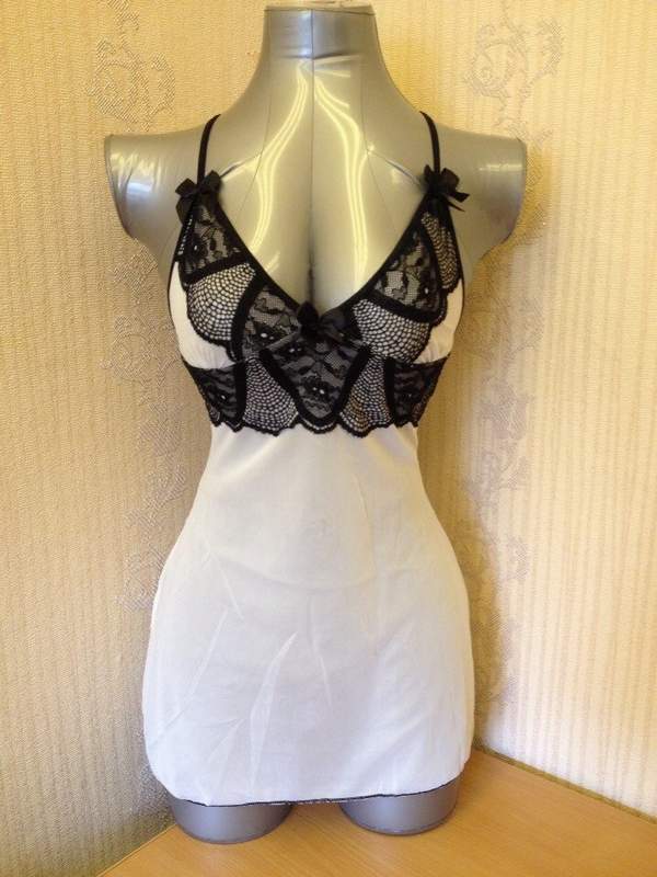Соблазнительная сорочка из мягкого сетчатого материала обтягивает фигуру, подчеркиваю все изгибы. Лиф сорочки украшен контрастным декором. Лямочки на спине перекрещиваются.