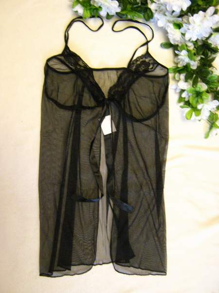 Прозрачная сорочка с разрезом. В комплект входят трусики. Лиф без чашечек, поролона и косточек.