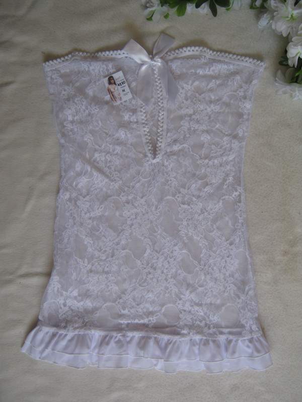 Полупрозрачная кружевная сорочка с цветочным рисунком без бретелей.
