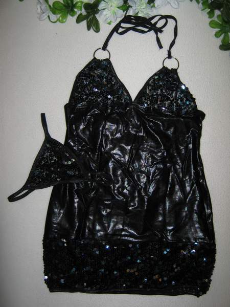 Сексуальная сорочка, украшенная блестящими пайетками. Бретели регулируются по высоте.