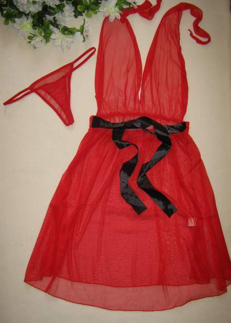 Прозрачная сорочка с атласной черной ленточкой.