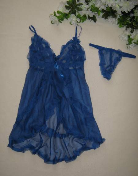 Прозрачная сорочка с разрезом от груди и рюшами.