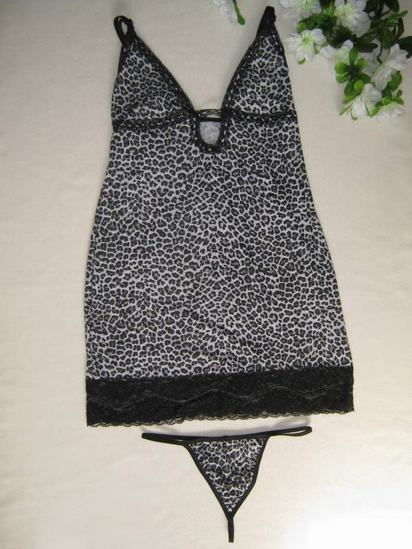 Милая ночная сорочка с леопардовым принтом. Внизу сорочка декорирована широким кружевом.
