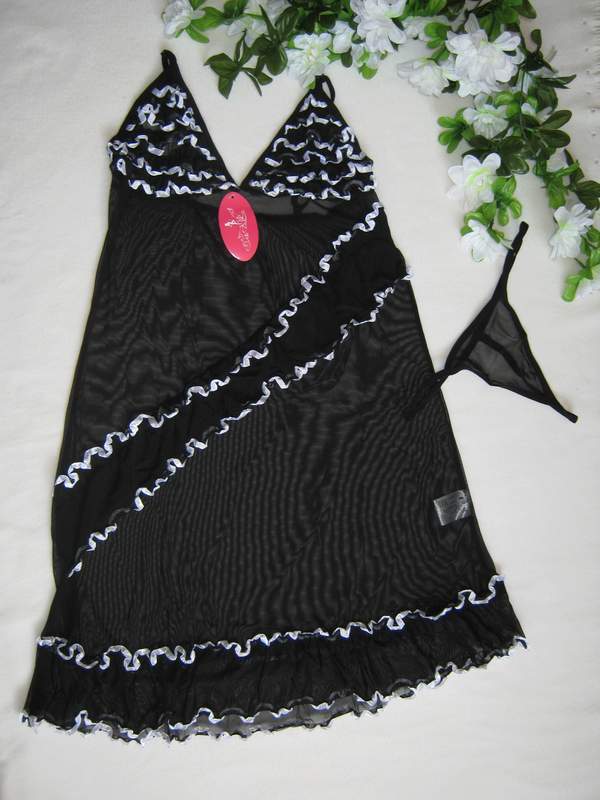Сексуальная сорочка декорирована контрастными атласными лентами.