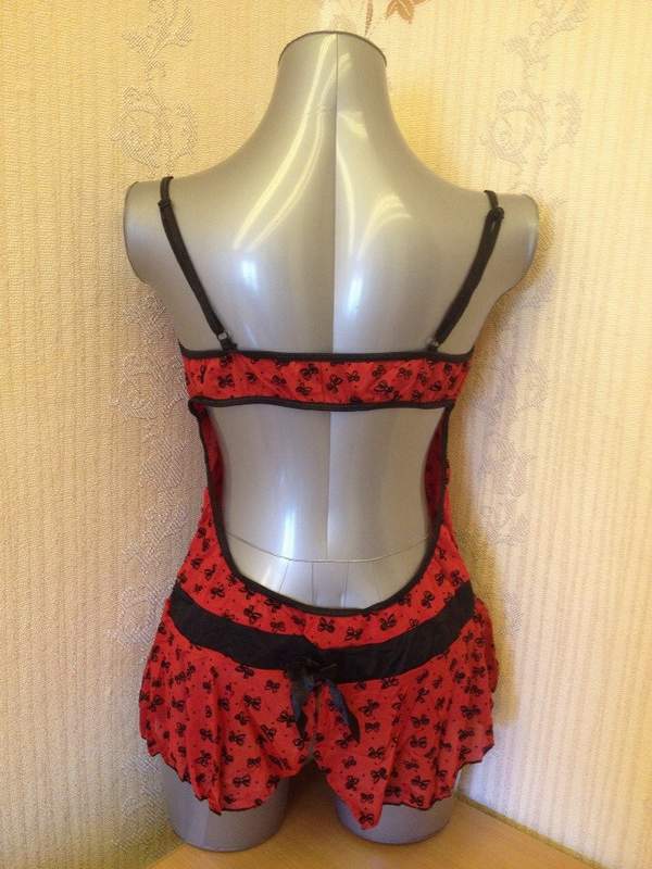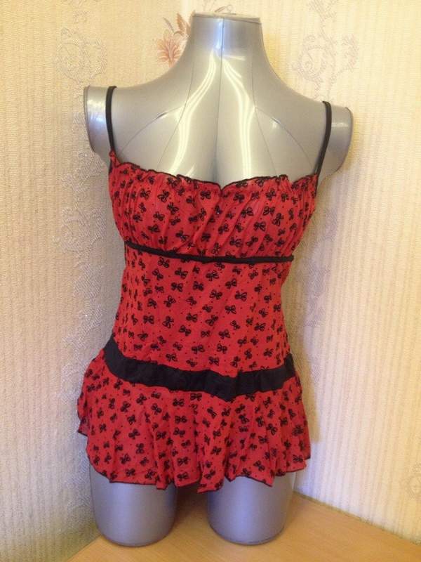 Мягкая красная сорочка с контрастным рисунком - бантиками.