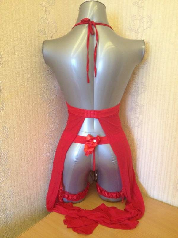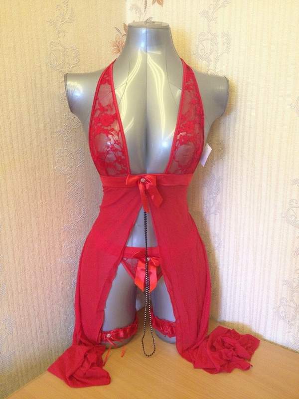 Роскошная длинная сорочка с кружевным лифом, завязывается на шее. Сорочка иммет два больших разреза спереди и сзади.