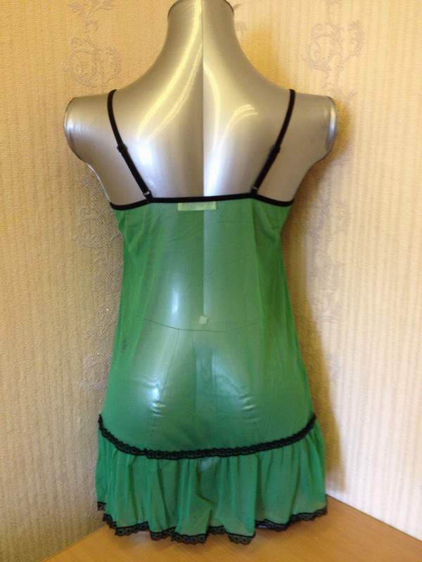 Полупрозрачная сорочка ярко-зеленого цвета на тонких регулируемых бретелях.