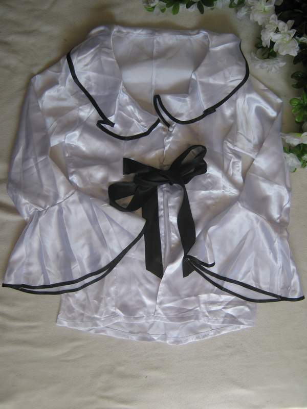 Атласная сорочка белого цвета. Спереди завязывается широкой ленточкой.