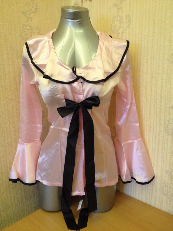 Атласная сорочка нежно-розового цвета. Спереди завязывается широкой ленточкой.