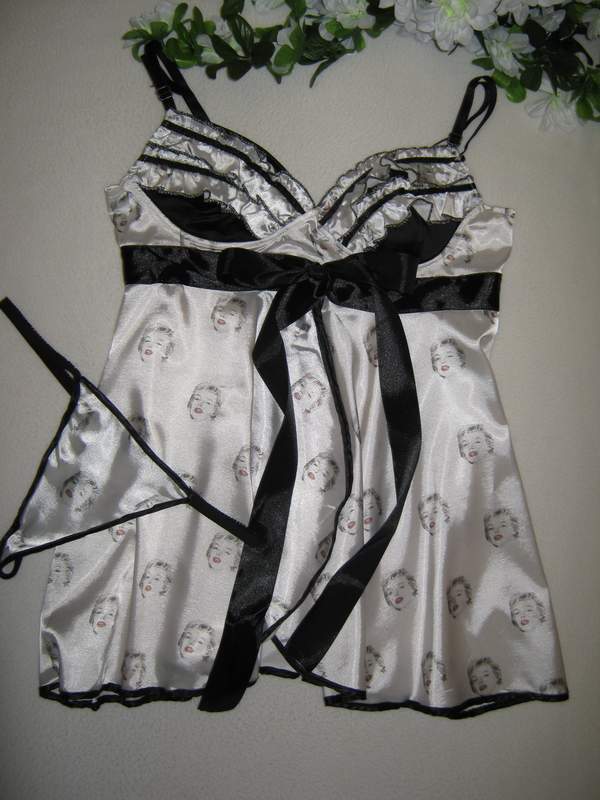 Атласная сорочка с принтом, чашечки на косточках.