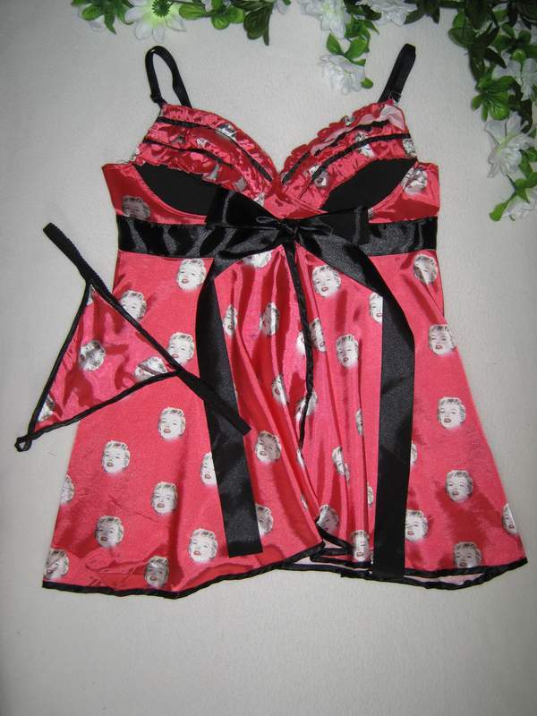 Атласная сорочка с принтом, чашечки на косточках.