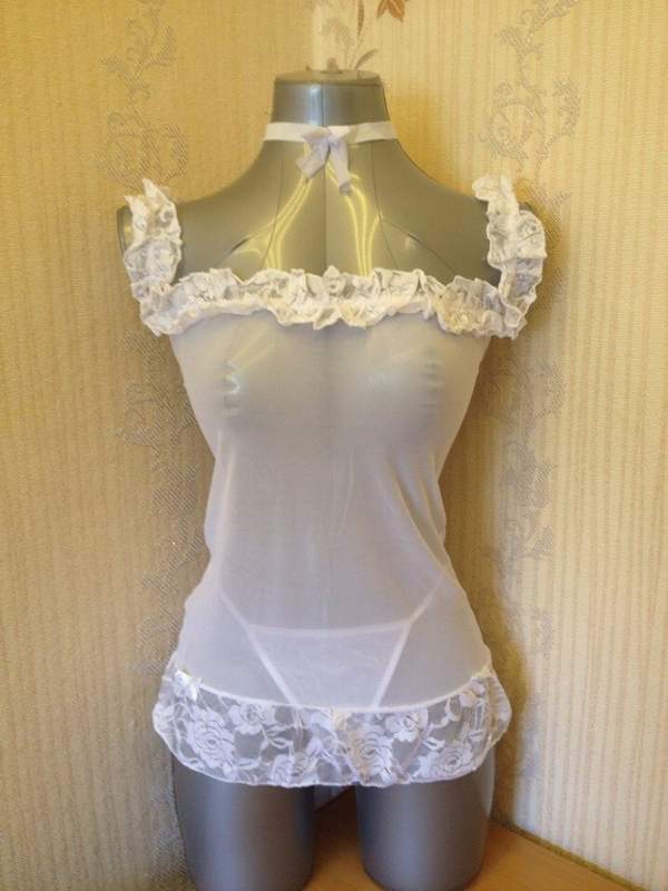 Сорочка выполнена из полупрозрачного тюля и кружева, что делает модель очень сексуальной.