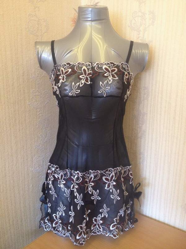 Элегантная полупрозрачная сорочка с вышитыми контрастными цветами.