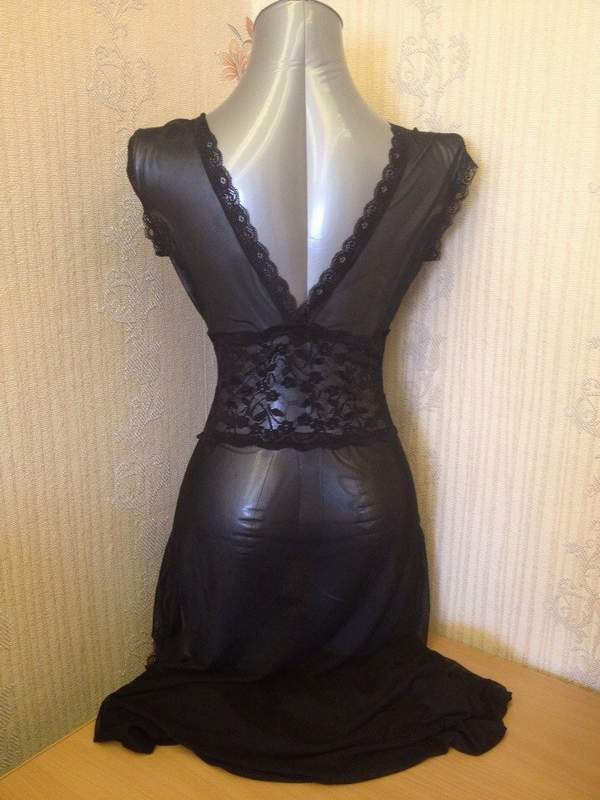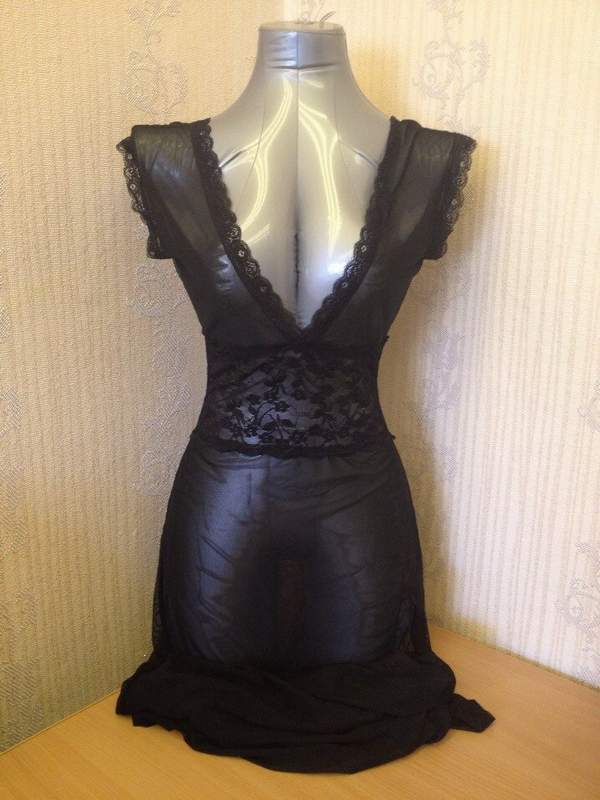 Длиннная ночная сорочка с глубоким декольте и высоким разрезом. Благодаря красивой линии декольте грудь выглядит очень соблазнительно.