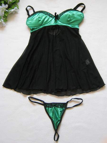 Короткая сорочка с поддерживающими чашечками. В комплект входят трусики-стринги.