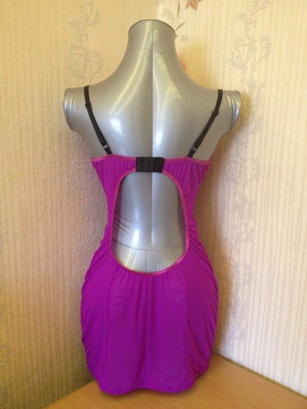 Соблазнительная ночная сорочка с мягкими чашечками на косточках. Модель декорирована черным кружевом и имеет застежку на крючках сзади на открытой спинке. Бретели регулируются по высоте.