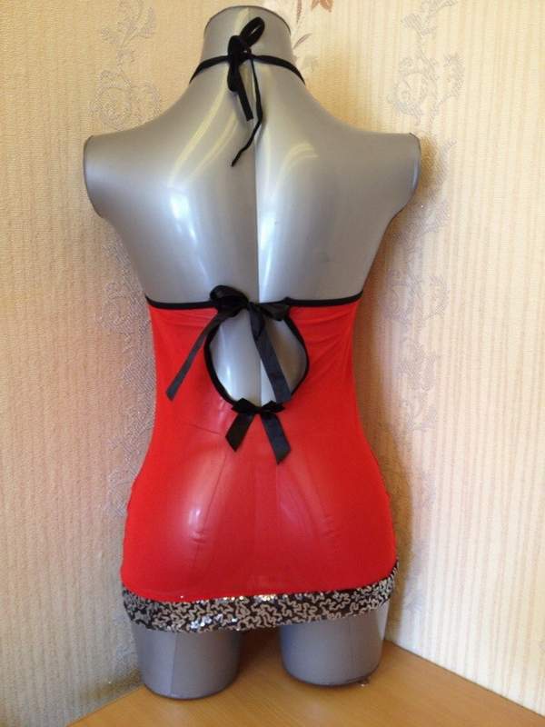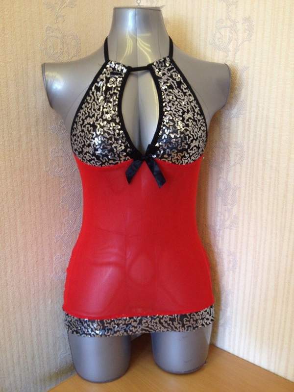 Полупрозрачная сорочка с вышивкой из блестящих пайеток. Трусики в комплекте.